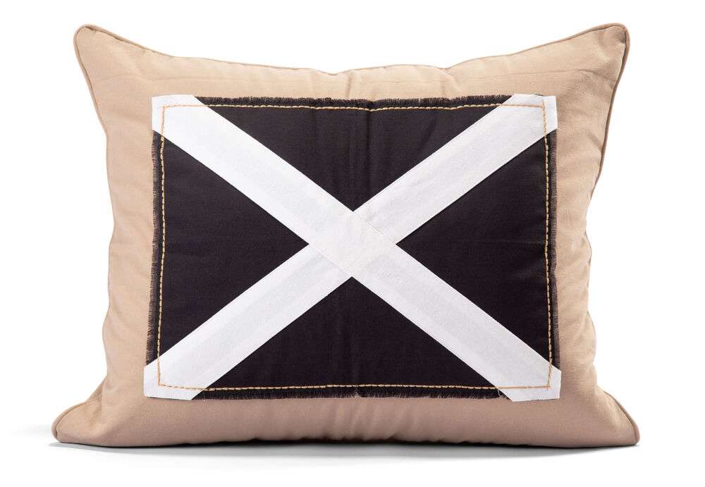 Kuddfodral Furuvik från Lord Nelson Victory. Med sina klassiska maritima färger och mönster av ett kryss gör blir kuddfodralen en snygg inredningsdetalj i hemmet, båten eller sjöboden. Storleken på fodralet gör att du får in en stor fluffig kudde som i sin tur är skön att luta sig emot.