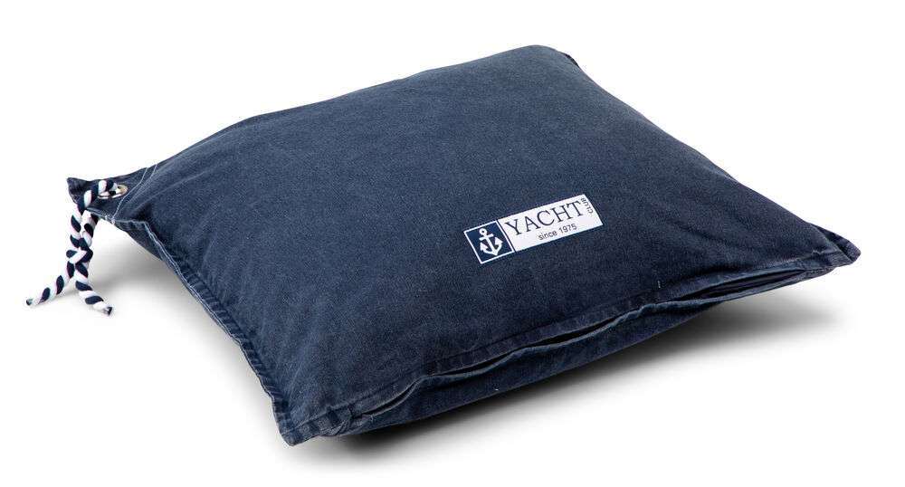 Kuddfodral av 100% bomull med etiketten ”Yacht Club Since 1975”. Öljett och rep på ena kortsidan för upphängning.