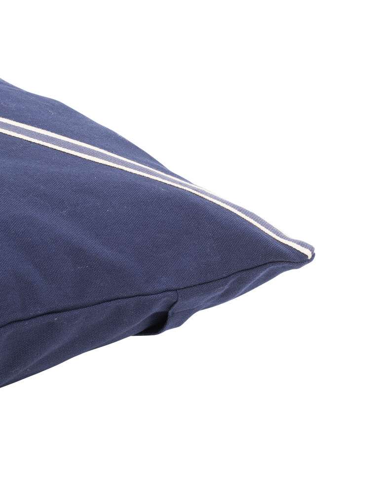 Marint kuddfodral i bomull. Klassiska ankaret i mitten, röda kontrastsömmar på marinblå botten och öljetter i sidan gör att den passar fint för den som älskar hav- och sjöliv.
