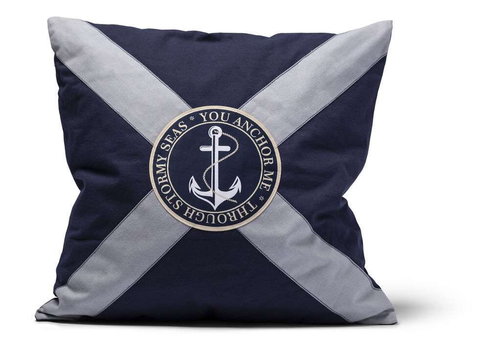 Maritimt och snyggt kuddfodral med matchande påsytt kryss.
