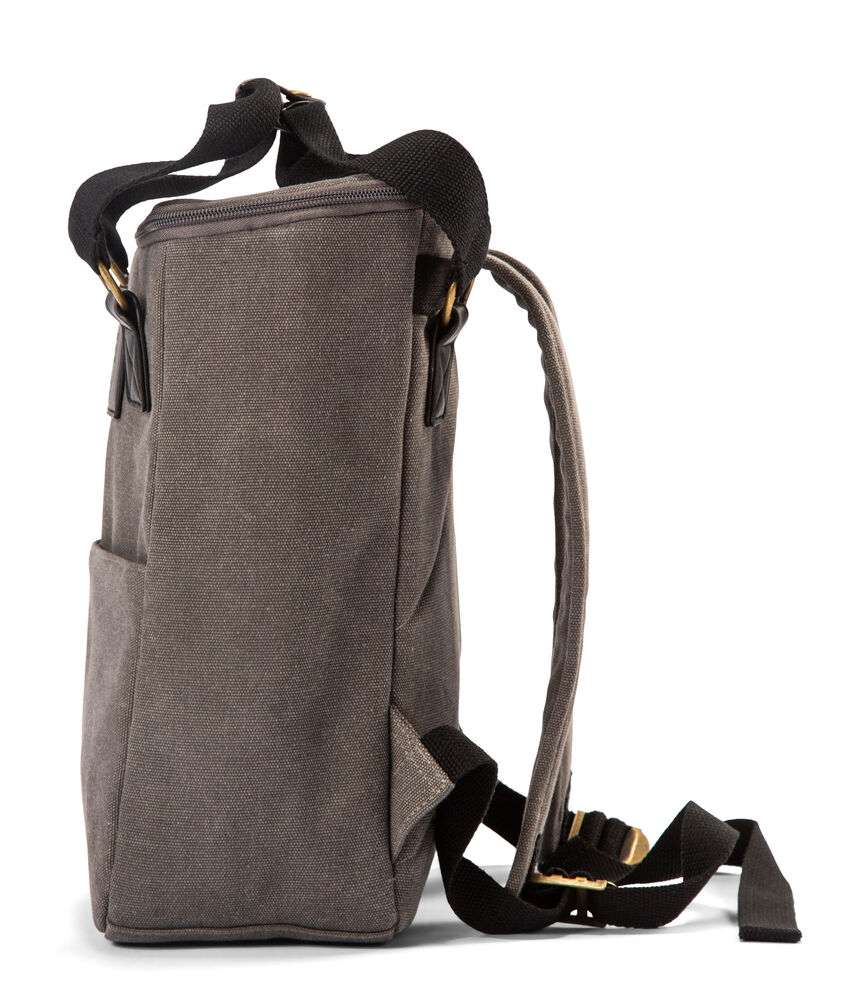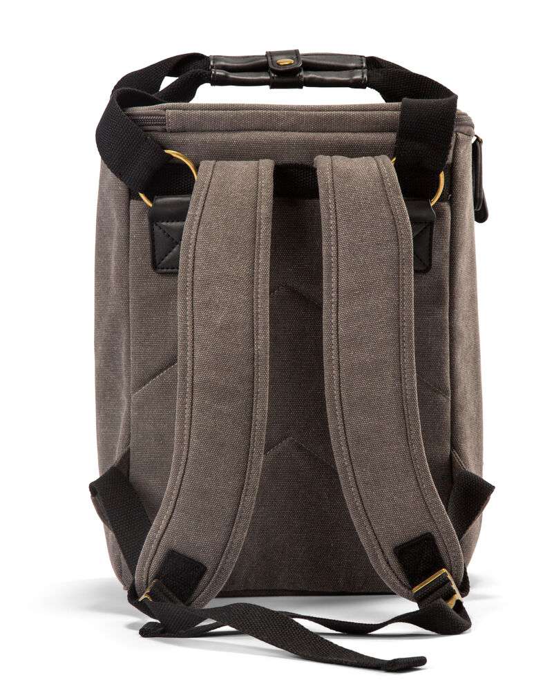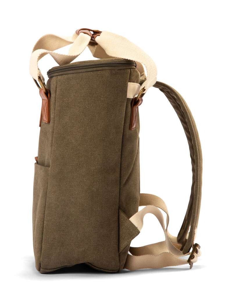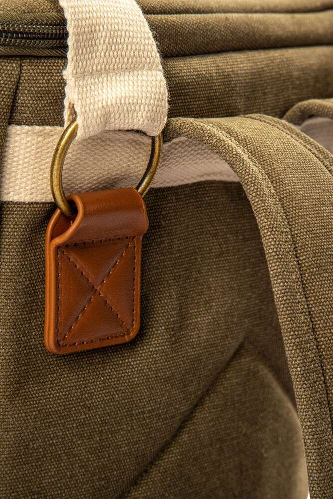 Snygg ryggsäckskylbag i ordentlig canvas, stort huvudfack och tre mindre fickor för tillbehör. Ryggsäcken har reglerbara remmar och håller picknicken välkyld under hela dagen. Detaljer i PU-läder.