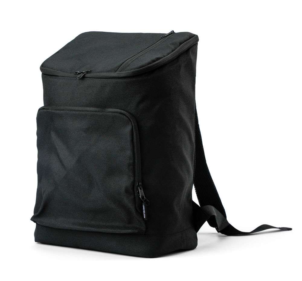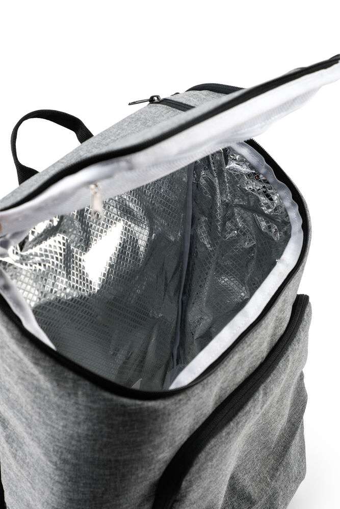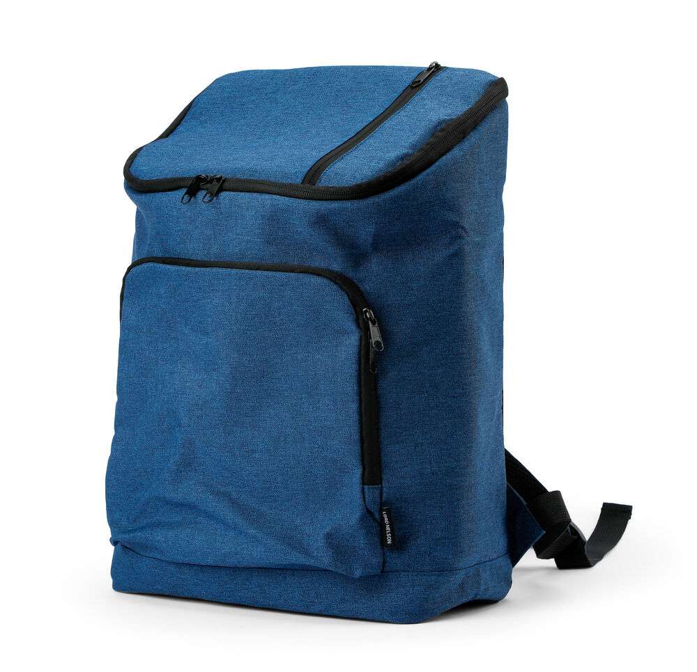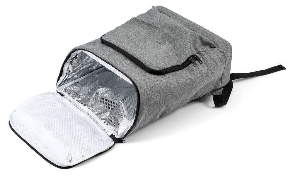 Rymlig kylryggsäck med en större ficka fram och en mindre ficka på väskans ovansida.