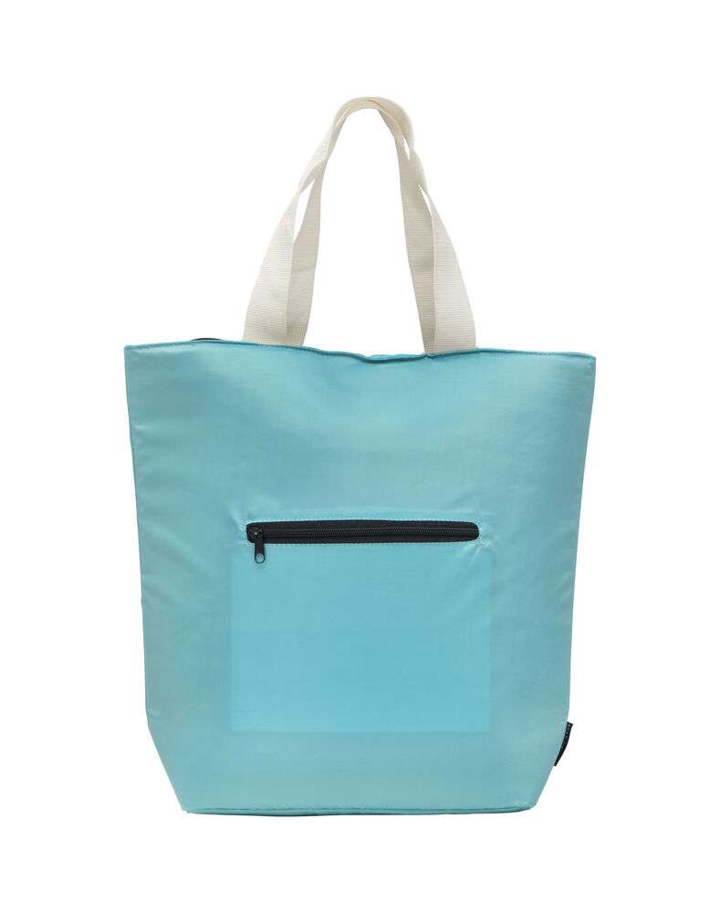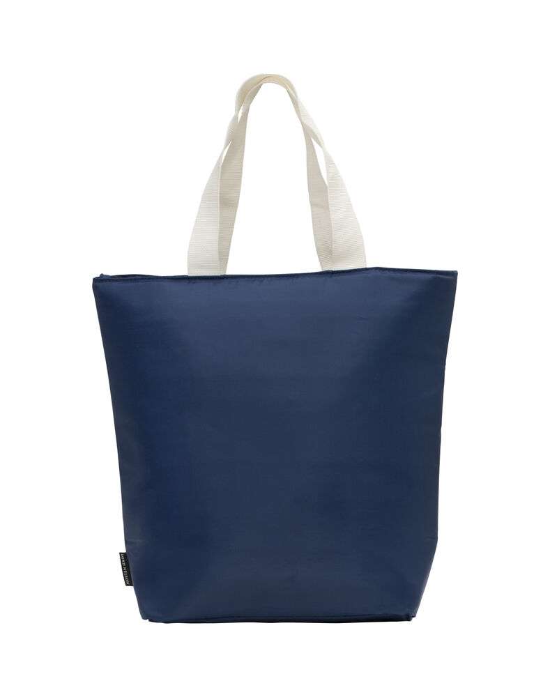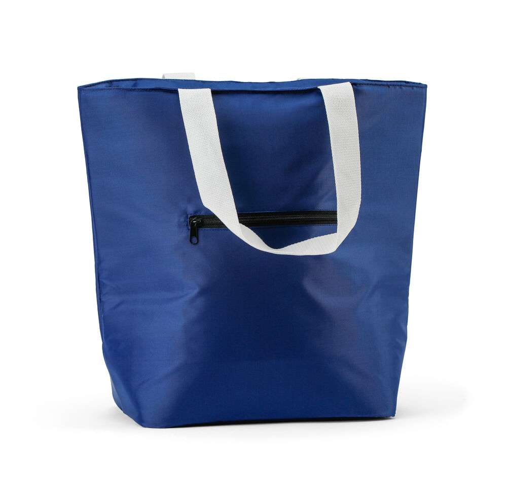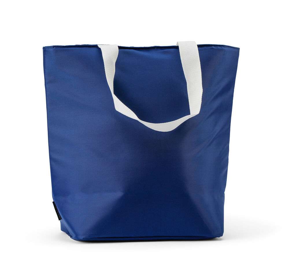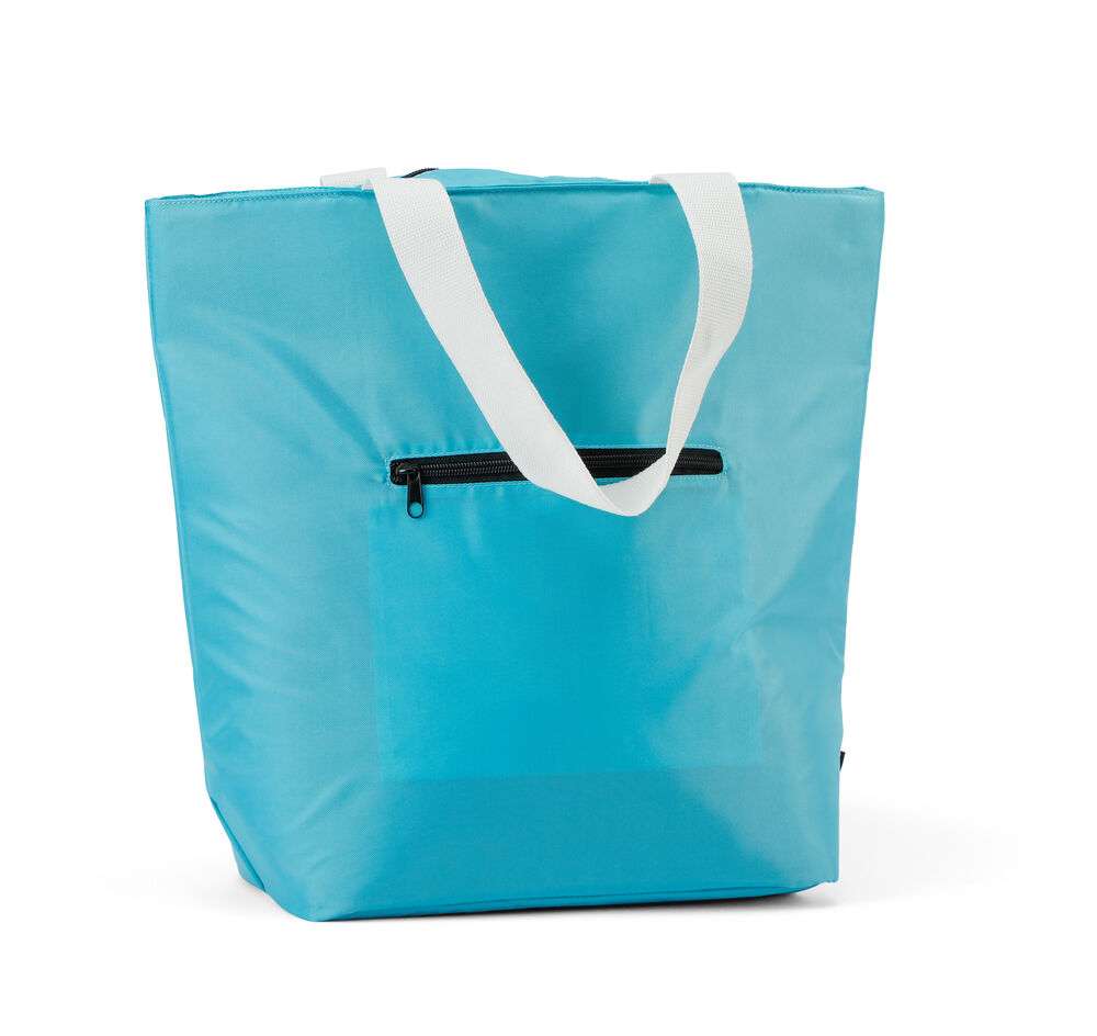 Rymlig kylväska i polyester med bärhandtag, dragkedja för stängning upptill samt ett mindre fack på framsidan.