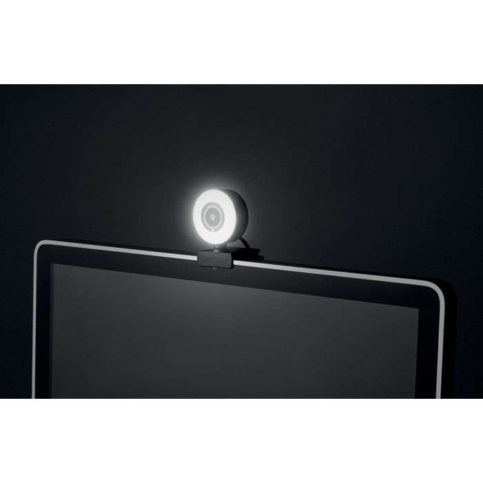 HD-webbkamera 1080P i ABS med inbyggd mikrofon och justerbar ringljus.