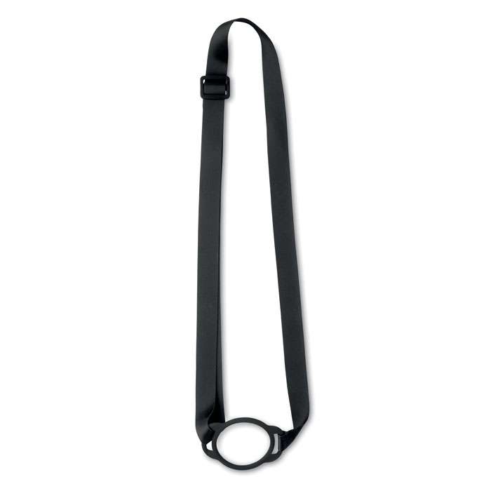 Logoband med mugghållare (6 cm i diameter) i silikon för festivalevenemang och justerbart spänne i PP. Nyckelbandet är 20 mm brett.