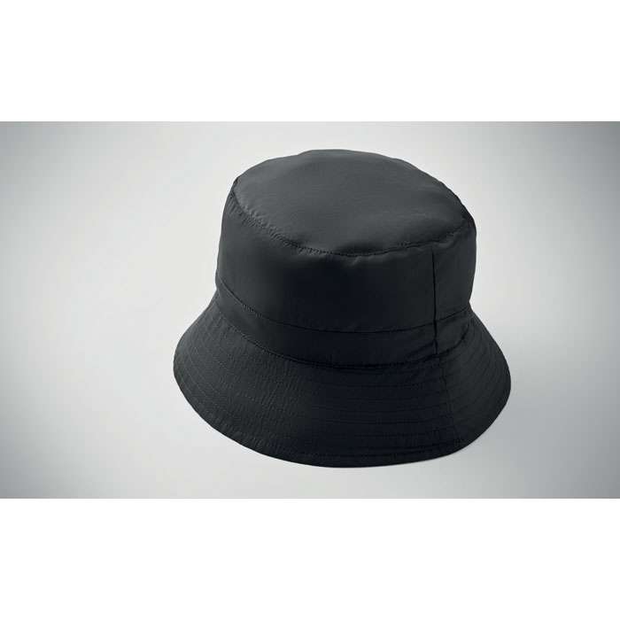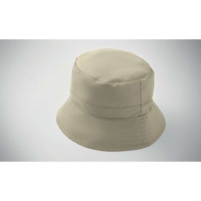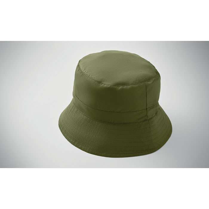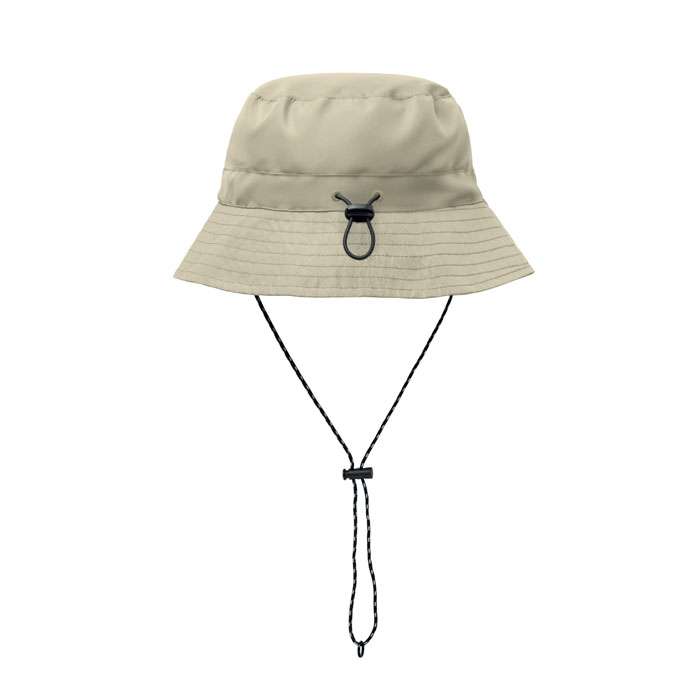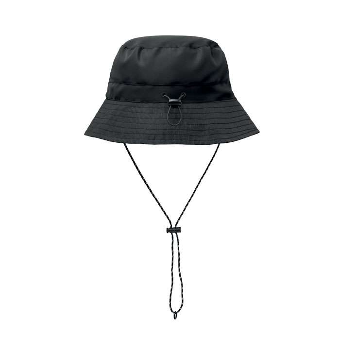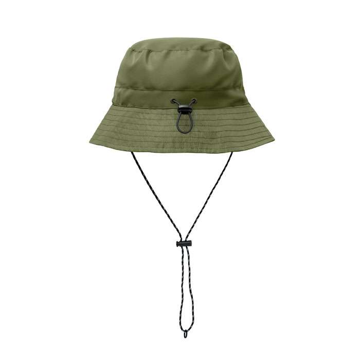 Vattenavvisande fiskehatt av polyester, inklusive egen materialpåse med ABS-karabinhake. 64 gr/m².