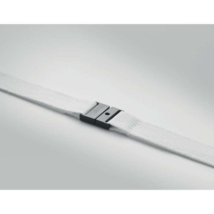 Logoband/nyckelband i bomull med metallkrok, snabbspäbne och säkerhetslås. 20mm bred och standardlängs