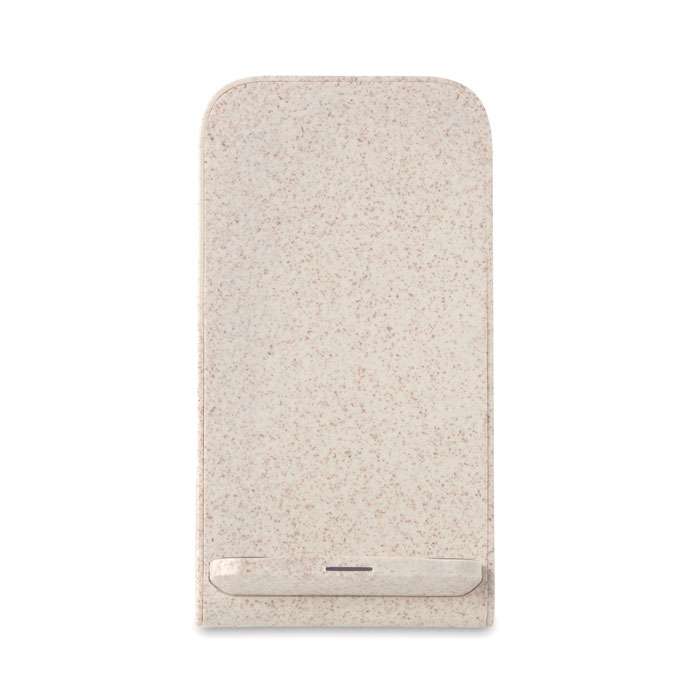 Trådlösladdare med hållare. Tillverkad iav 35% vetehalm och 65% ABS. Effekt DC5V/2A (10W).