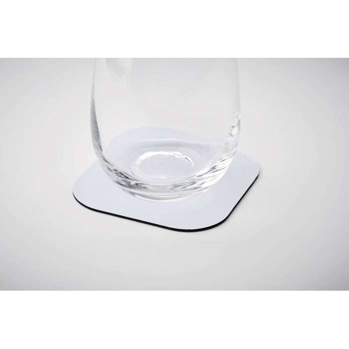 Drickunderlägg i polyester med svart gummibas gjord för sublimering. Med sublimering kan du göra helt utfallande tryck och alla typer av logotyper, tonongar och bilder m.m. Endast en schablonkostnad oavsett antal färger.
