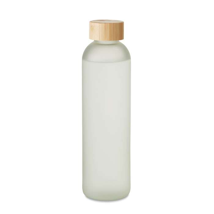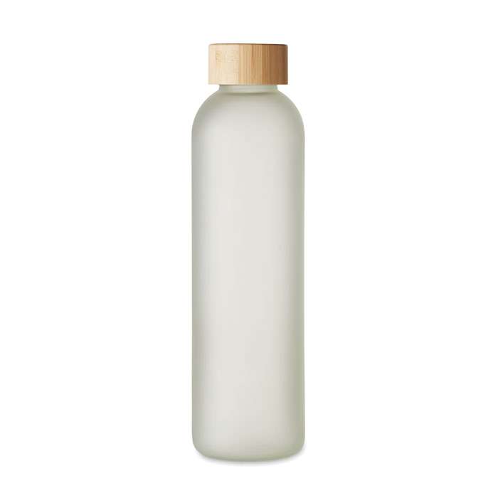Glasflaska med specialbeläggning för sublimering och lock av bambu. Kapacitet: 650 ml.