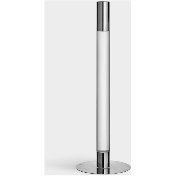 Lumiere från Orrefors är en serie ljusstakar där det kristallklara glaset och den spegelliknande metallen förenas i en form som är lika minimalistisk som slående. Ljusstaken (320 mm) i glas och silverfärgad metall förgyller sin plats var du än placerar den. Formgiven av Ingegerd Råman 2021.