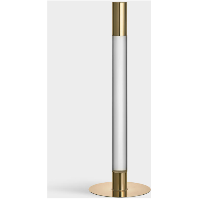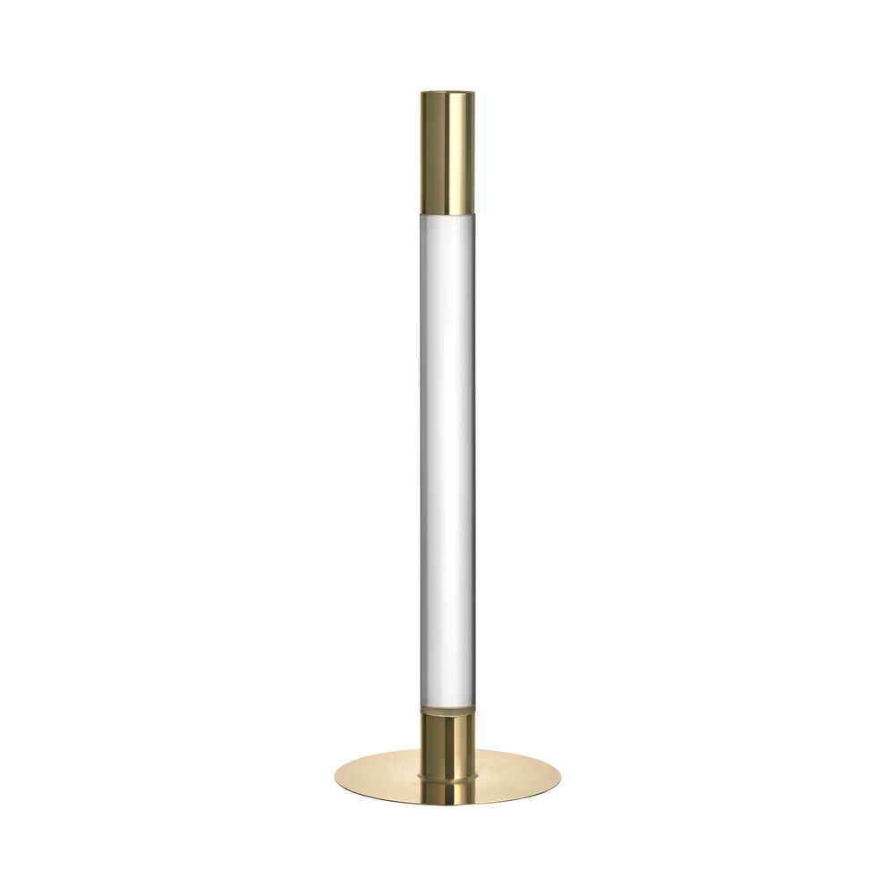 Lumiere från Orrefors är en serie ljusstakar där det kristallklara glaset och den spegelliknande metallen förenas i en form som är lika minimalistisk som slående. Ljusstaken (320 mm) i glas och guldfärgad metall förgyller sin plats var du än placerar den. Formgiven av Ingegerd Råman 2021.