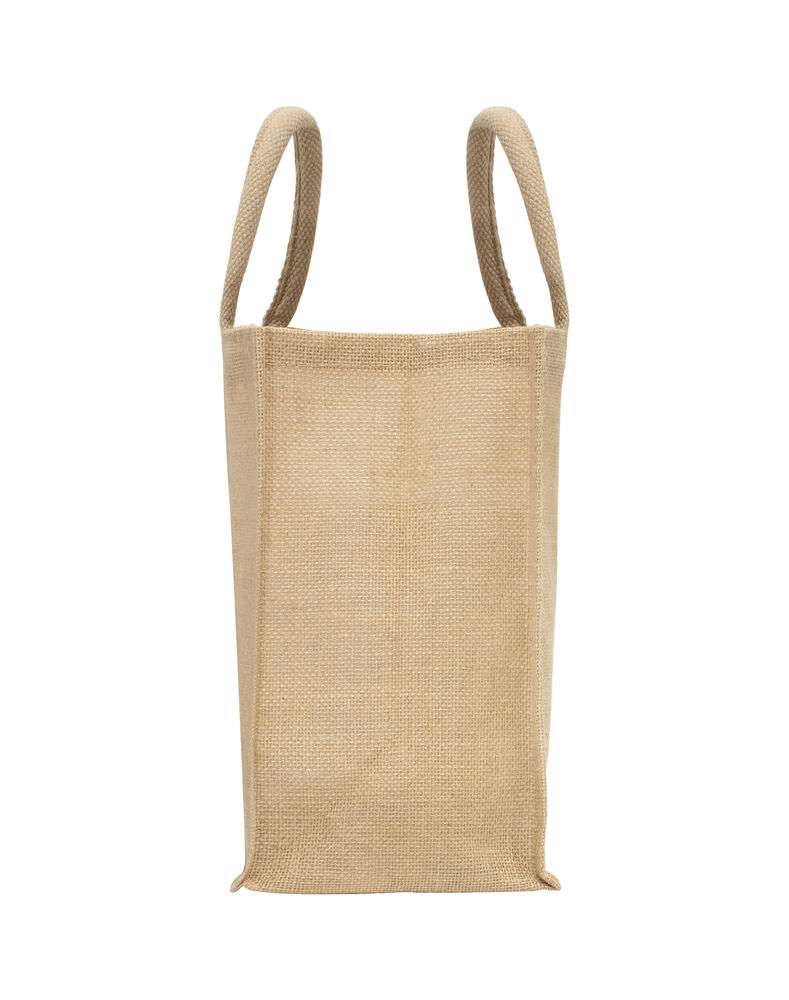 Denna lunchbag är gjord i jute och har en skyddande PE-plast invändigt. Det går utmärkt att sätta ett trevligt litet budskap på bagen.