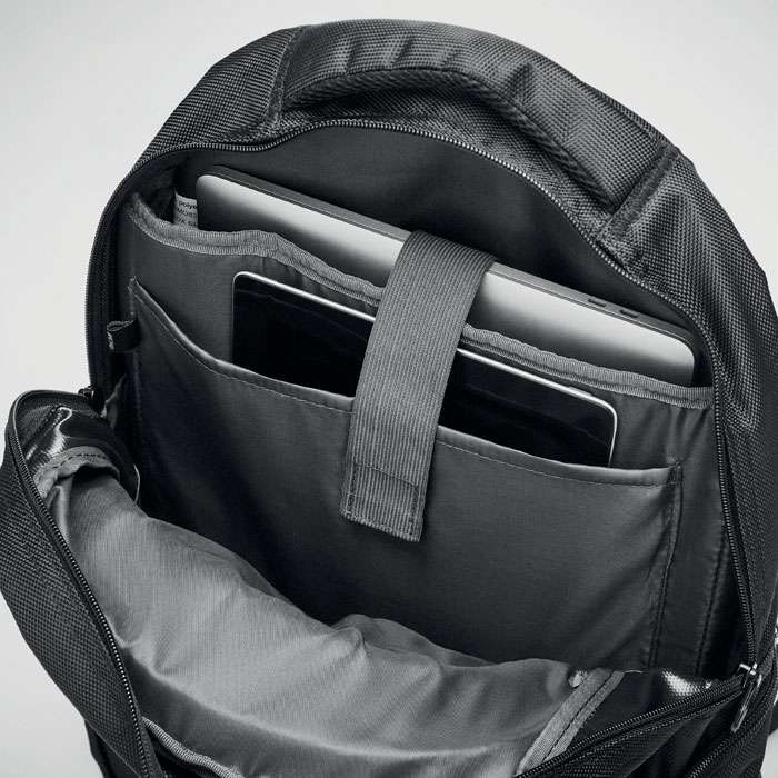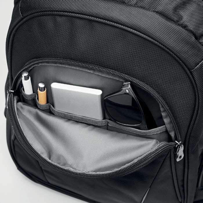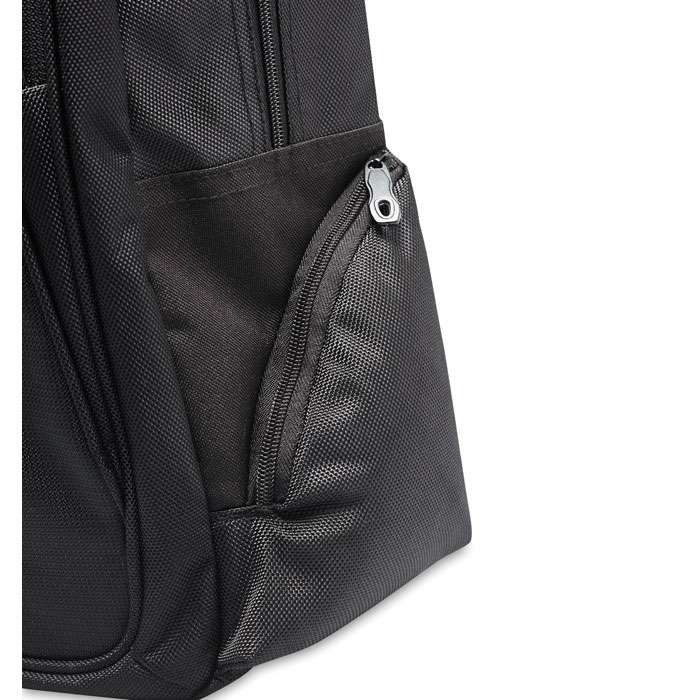 Ryggsäck med fack för 15 tums laptop. Datorryggsäcken har flertalet fickor och pennhållare. Vadderade rygg och axelband. Materialet är kraftigt och slitstark 1680D polyester.