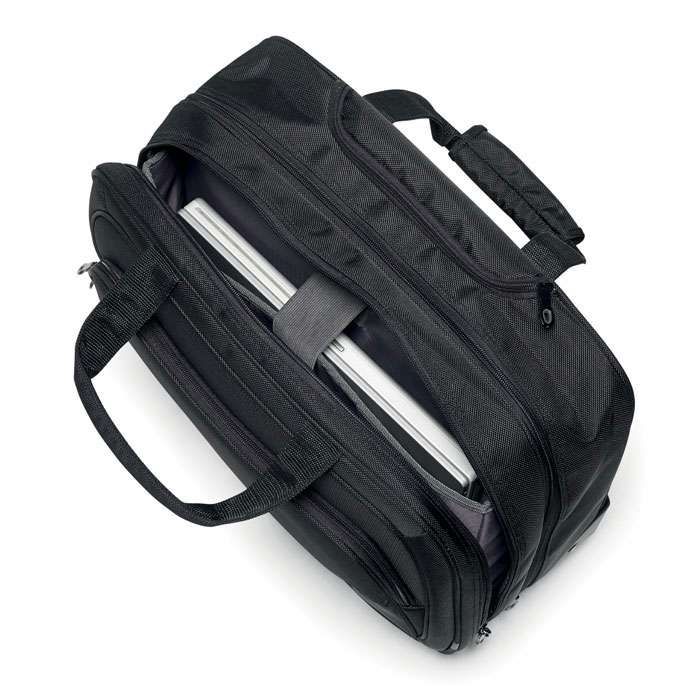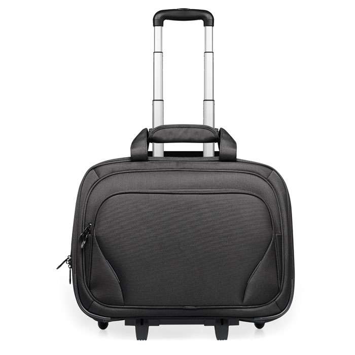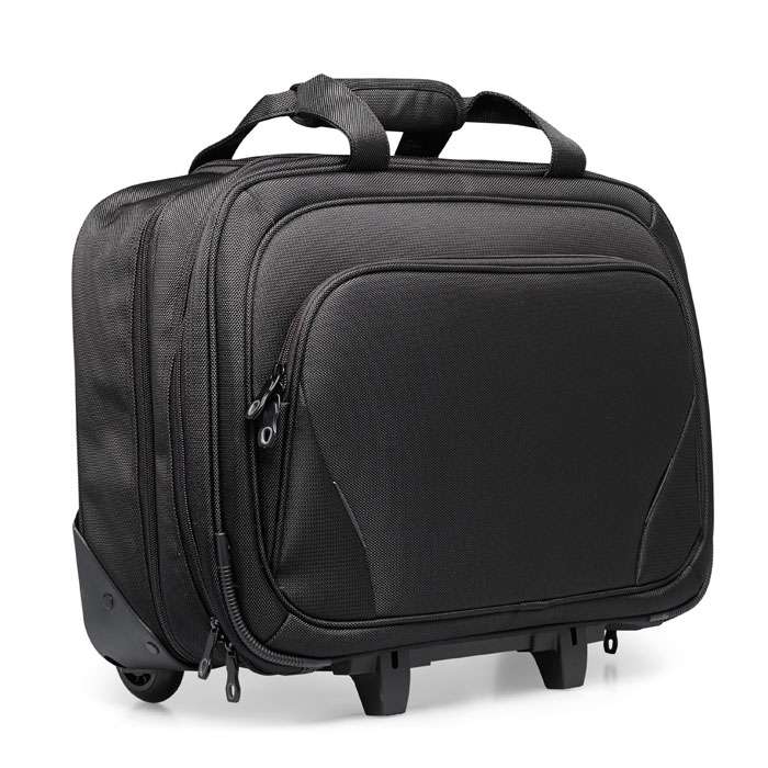 Businessväska / kabinväska med trolleyhandtag och hjul. Vadderade fack som rymmer en 17 tums dator och en 10 tums padda. Flera fack och fickor för smidig förvaring. Väskan är tillverkad i kraftig 1680D polyester.