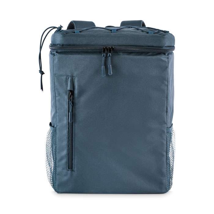 Kylryggsäck i 600D RPET-polyester med vadderade justerbara axelremmar, PEVA-foder och 5 mm PE-skum. Inklusive frontficka och två sidofickor i nät. Volym: 9L.