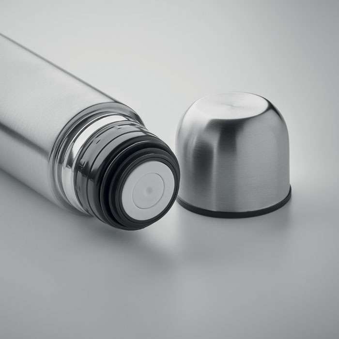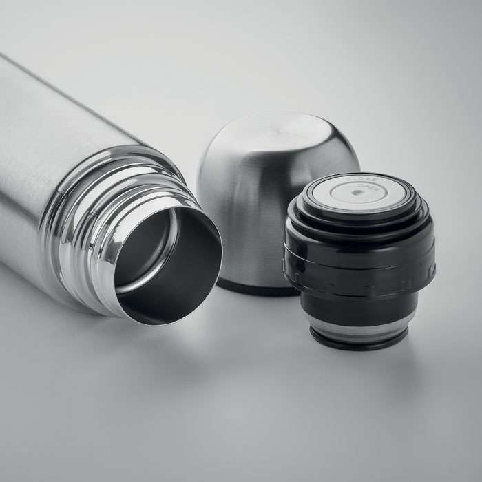 Termoflaska meddDubbelvägg i återvunnet rostfritt stål (90 % återvunnet rostfritt och stål 10 % rostfritt stål) isolerad vakuumflaska. Locket fungerar även som mugg. Läcker inte. Volym: 500 ml.