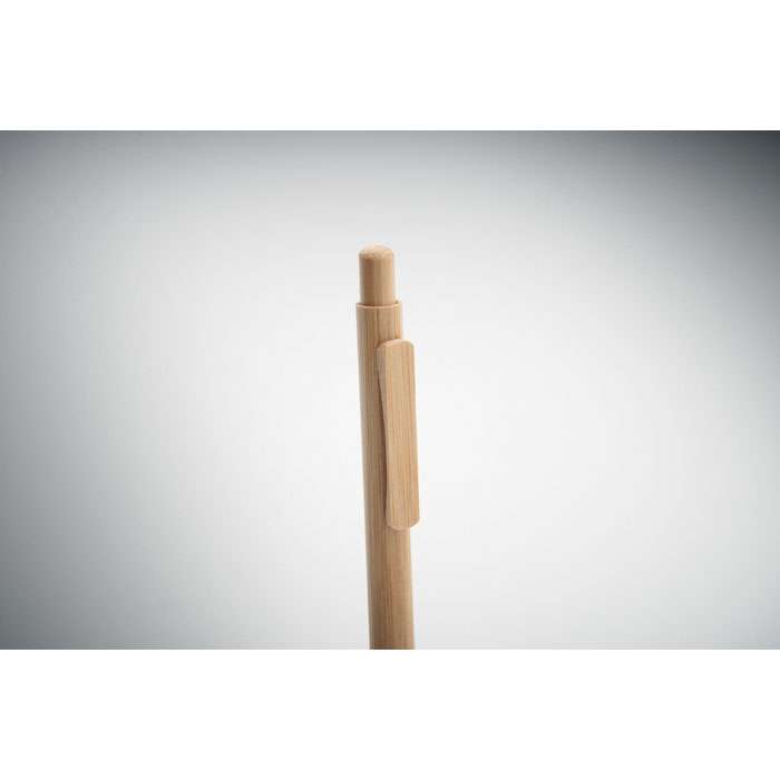 Bläckpenna med skaft, spets och klips i bambu. Blått bläck.