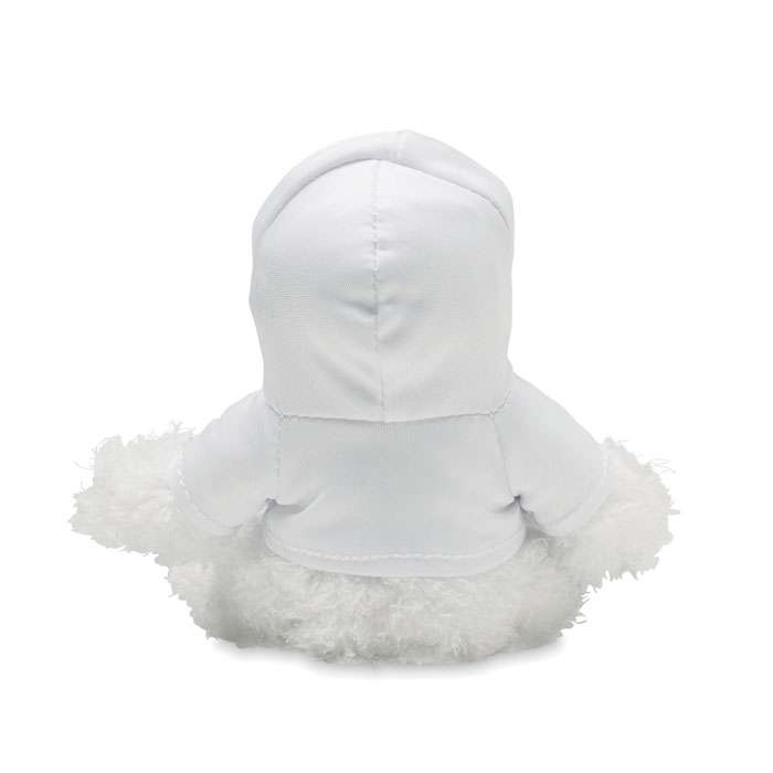 Mjukisko i plysch med en tröja med huva. Rekommenders med sublimationstryck.