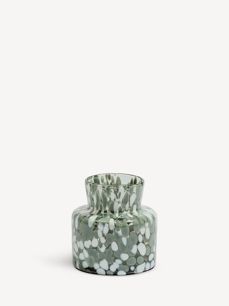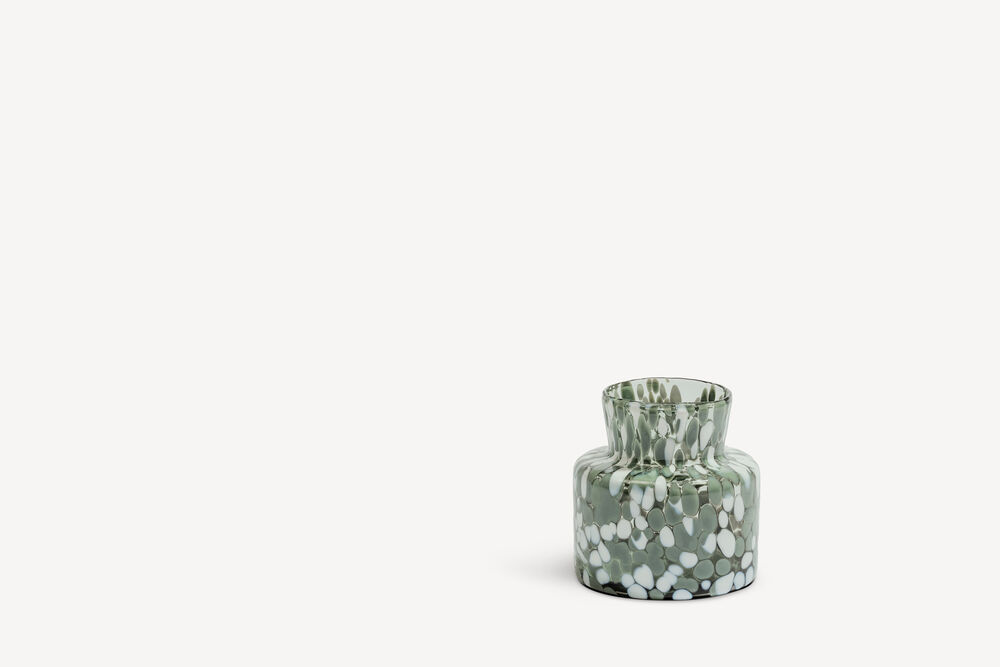 Meadow har en blomsteräng som både inspiration och uttryck. Det är en serie vaser som gör sig lika väl på egen hand som med ett fång blommor. Tack vare den glaskrossteknik som används i tillverkningen är varje vas unik. Den lilla vasen sommar är som gjord för att omfamna en lite mindre bukett, eller på egen hand lysa upp ditt hem som en vacker sommardag. Design av Sara Persson.