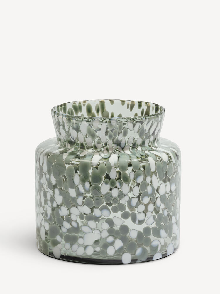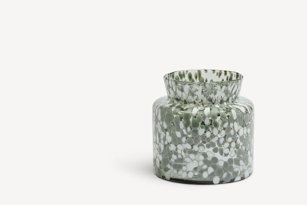 Meadow har en blomsteräng som både inspiration och uttryck. Det är en serie vaser som gör sig lika väl på egen hand som med ett fång blommor. Tack vare den glaskrossteknik som används i tillverkningen är varje vas unik. Den stora vasen sommar är som gjord för att omfamna en lite större bukett, eller på egen hand lysa upp ditt hem som en vacker sommardag. Design av Sara Persson.