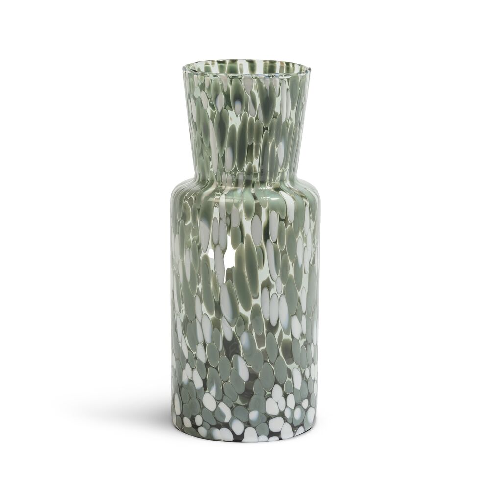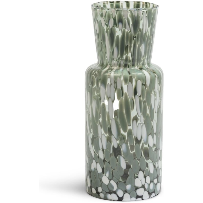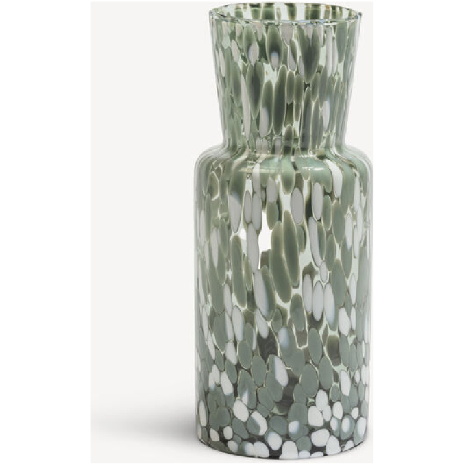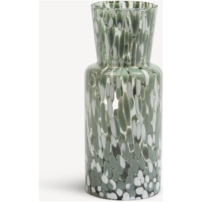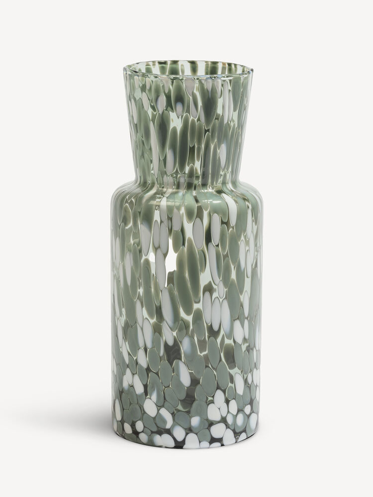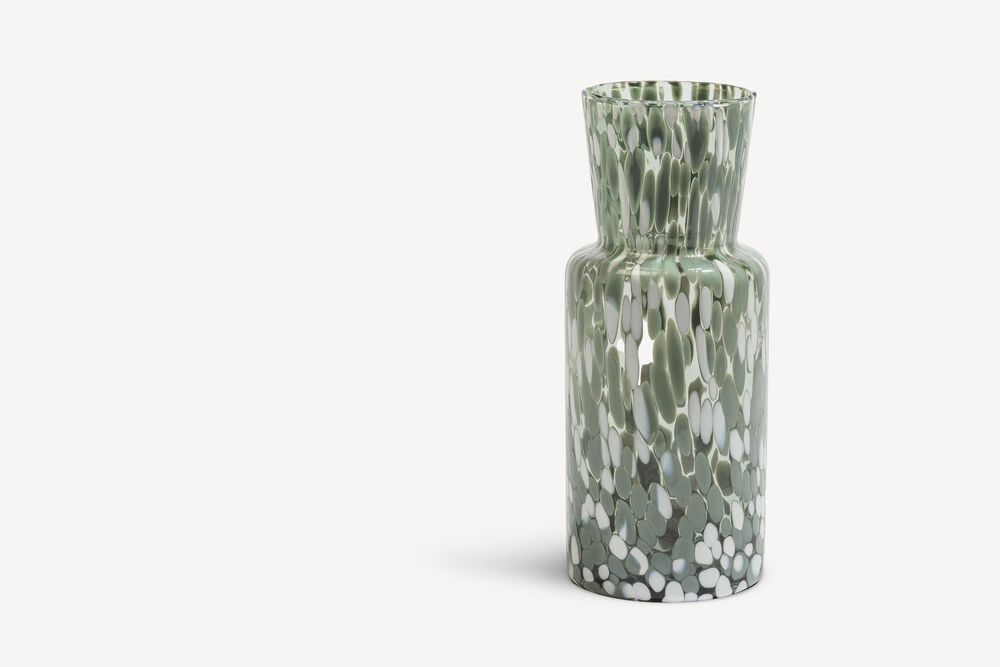 Meadow har en blomsteräng som både inspiration och uttryck. Det är en serie vaser som gör sig lika väl på egen hand som med ett fång blommor. Tack vare den glaskrossteknik som används i tillverkningen är varje vas unik. Den höga vasen summer är som gjord för att hålla upp en hel famn av tulpaner eller solrosor, eller på egen hand lysa upp ditt hem som en vacker sommardag. Design av Sara Persson.
