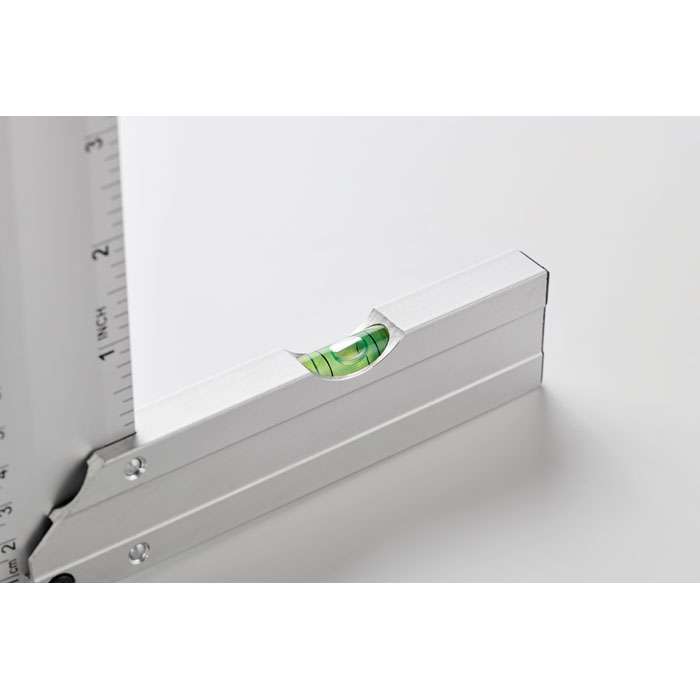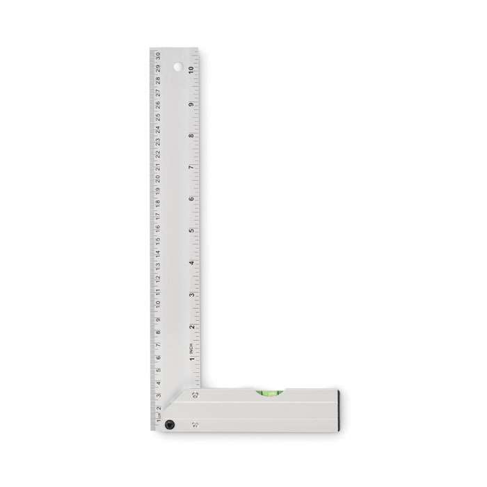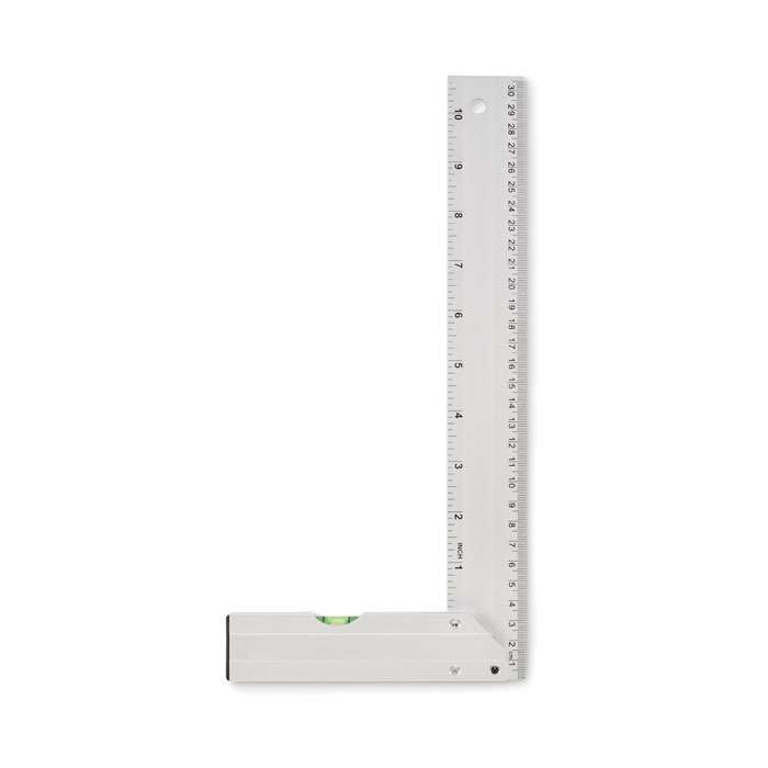 Vinkelhake i aluminium med vattenpass. Linjal 30 cm.
