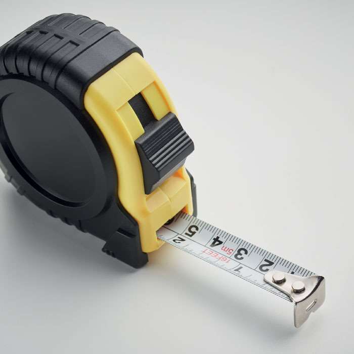 Måttband, 5 meter i ABS plast. Handledsband och praktiskt clips.