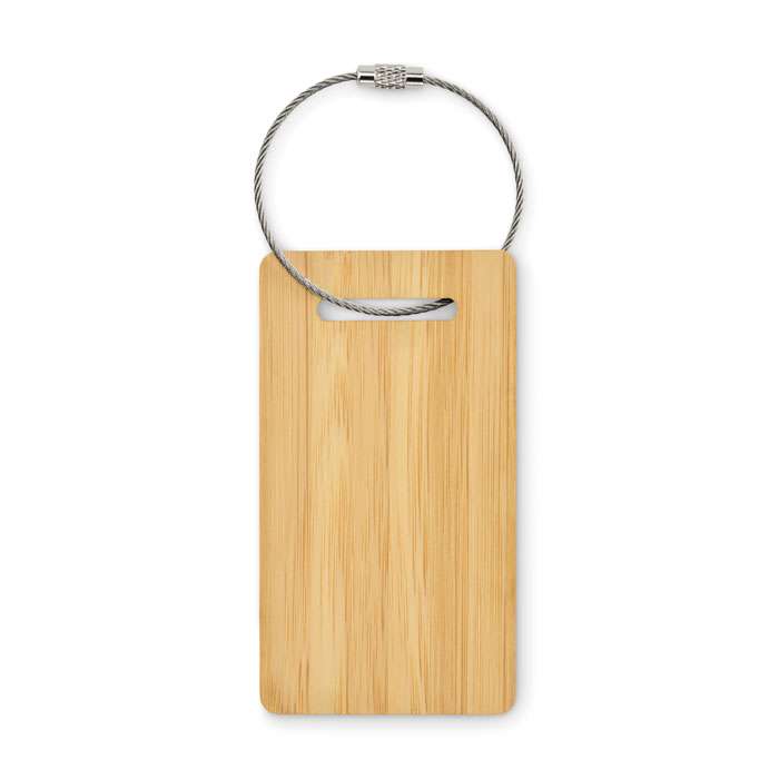 Bagagetagg i bambu med vajer i rostfritt stål.