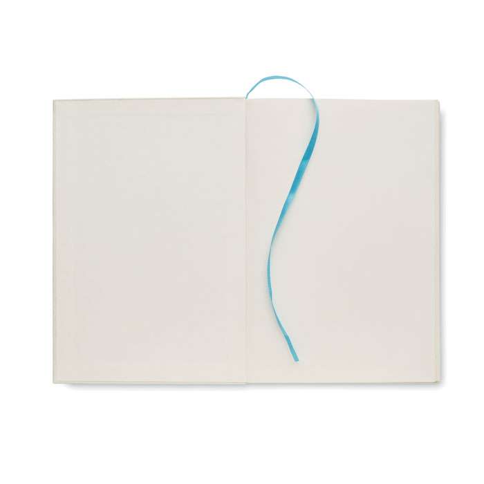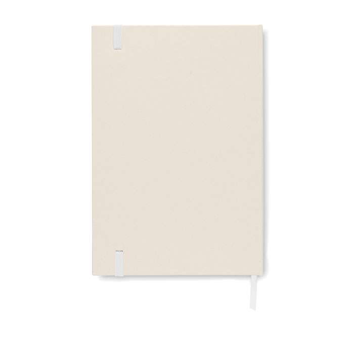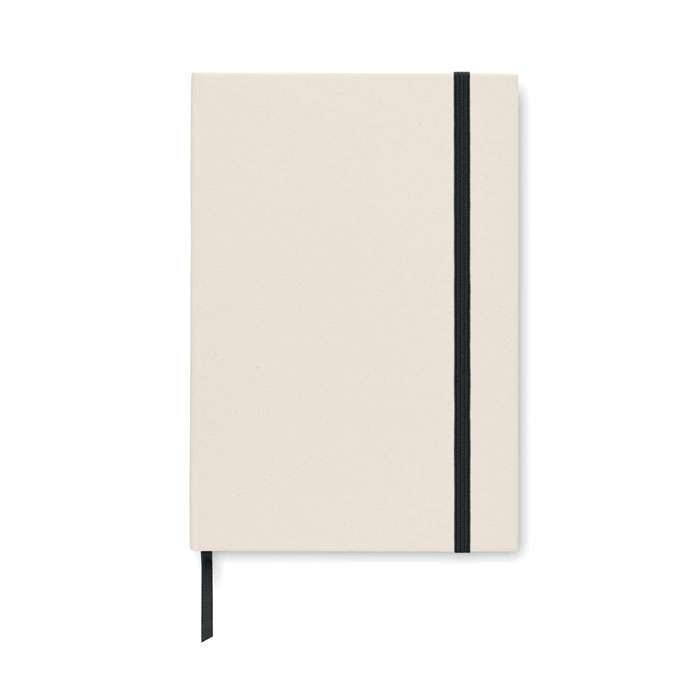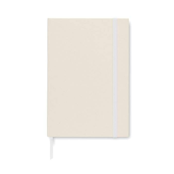 A5 Anteckningsbok med hårt omslag och 160 linjerade sidor (80 ark 80 gsm) tillverkad av 70 % återvunnen mjölkkartong och 30 % återvunnet papper. Inbunden. Elastiskt band, bokmärks band.