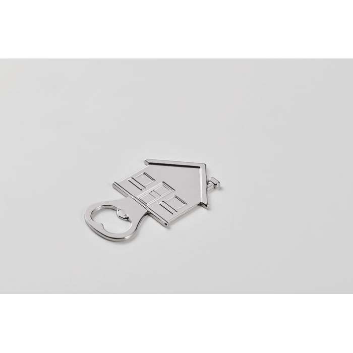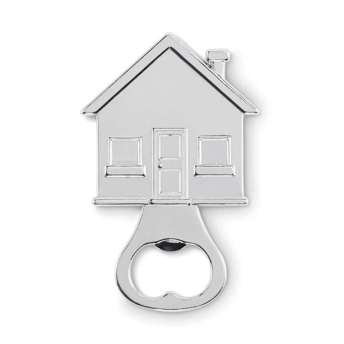 Kapsylöppnare i zinklegering i husform.