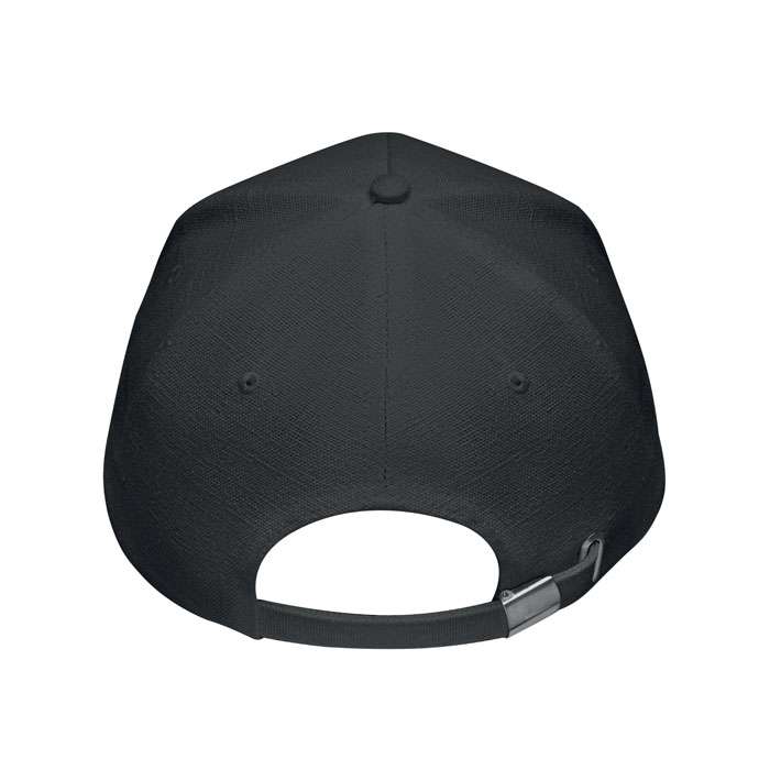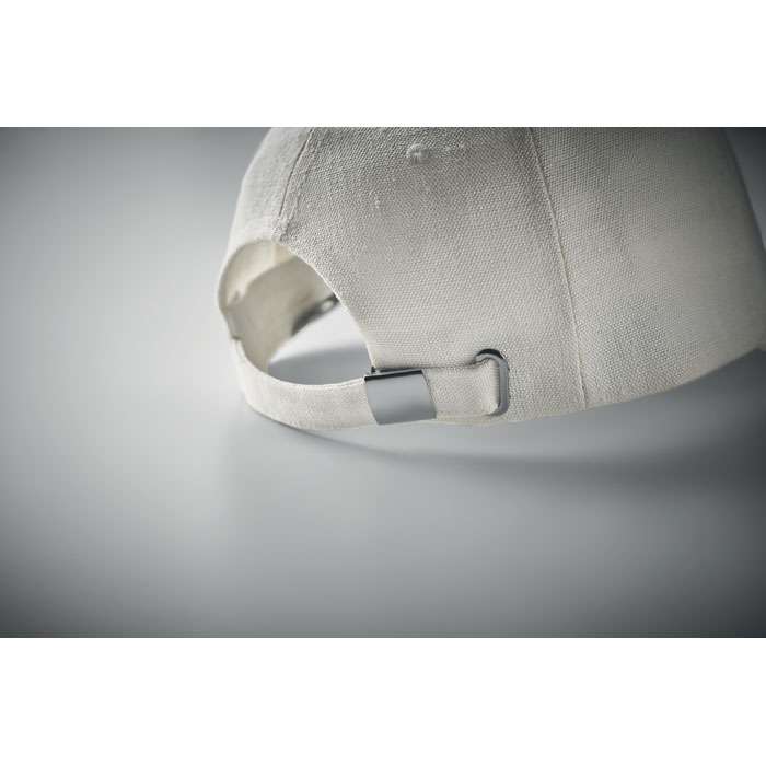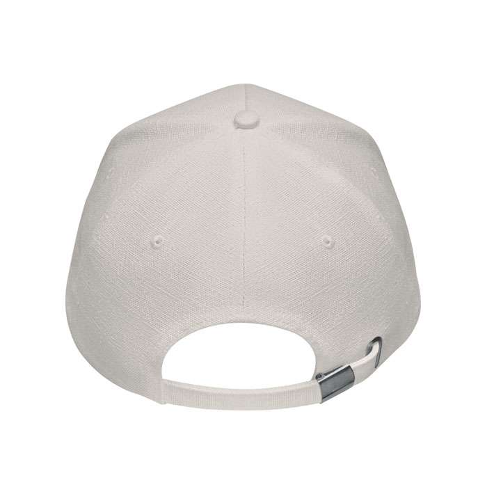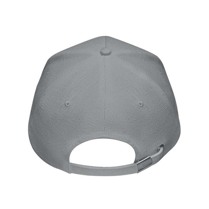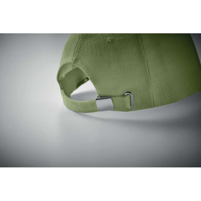 Keps med 5 paneler i 100% kraftig industri hampa 370 gr/m². Mässingspänne med låsklips och justerband. 5 ventilationshål i ton-i-ton stygn. Storlek 58cm.