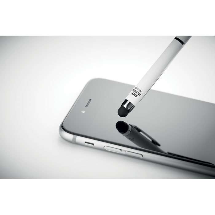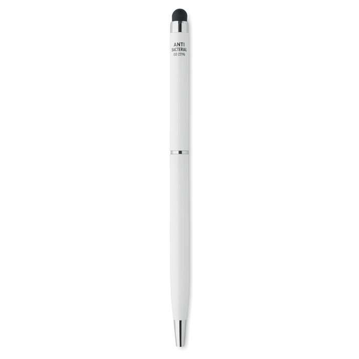Aluminium penna av vridmodell och med antibaktriell behandlat skaft och detaljer och klips i krom. ISO 22196. Blått bläck.