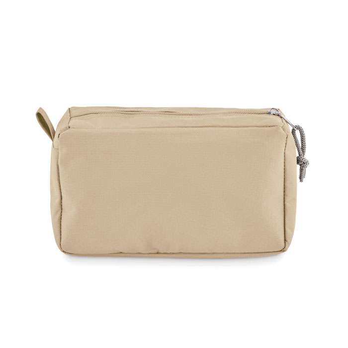 Necessär med frontficka och ”hangerloop”. 600D polyester med PPE-baksida.