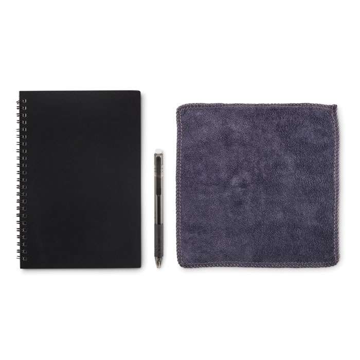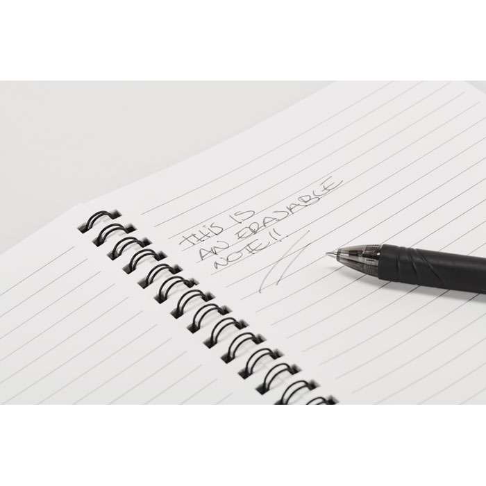 A5 Återanvändbar anteckningsbok med PP-omslag. 36 linjerade sidor av återvunnet papper (18 ark). Kompatibel med alla dokument-skanningsappar. Inklusive vattenlöslig penna och rengöringsduk. FSC 100 % | P10 | FSC- C213206