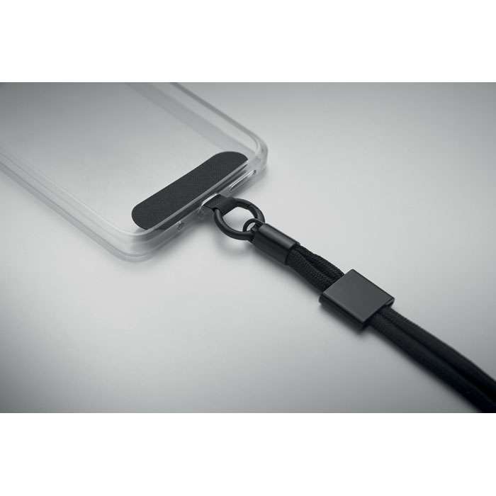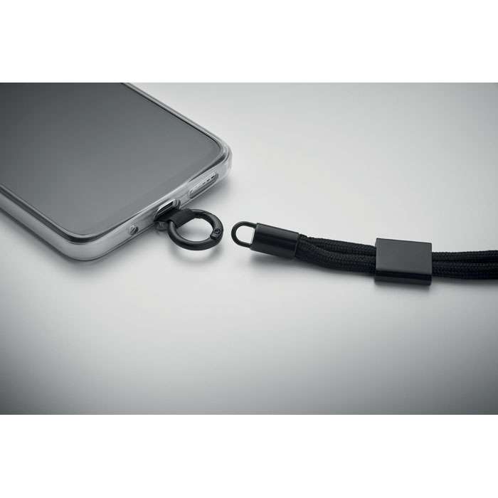 Justerbar handledsrem och hållare för telefon i RPET-polyester. Längd 25 cm.