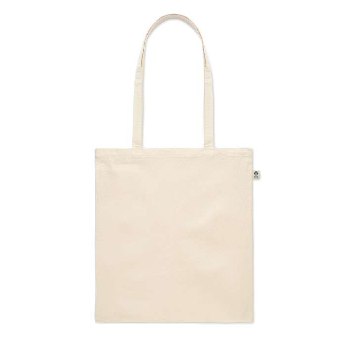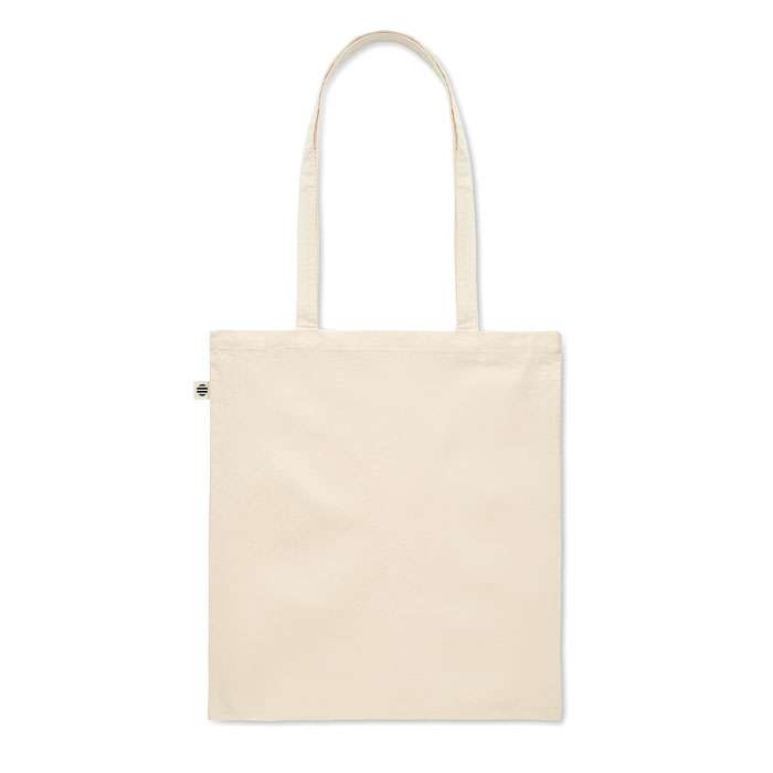 Kasse i ekologisk bomull med långa handtag. 180 gr/m².