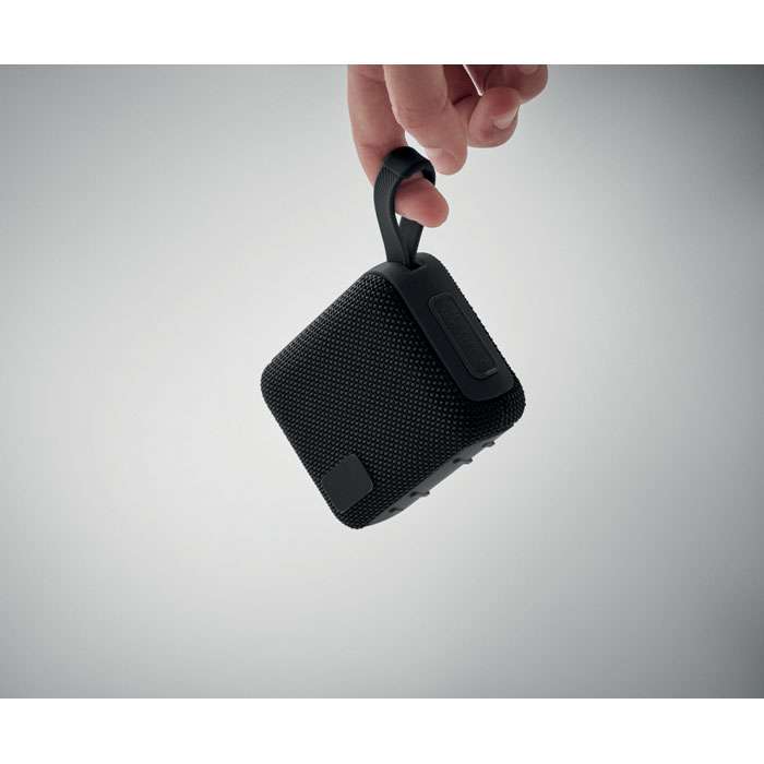 5.0 trådlös högtalare i ABS med RPET-tyg och upphängningssladd. 1 uppladdningsbart Li-ION 800 mAh batteri ingår. Innehåller en SD-kortport och en AUX/ USB-kabel. Uteffekt: 5W, 3 Ohm och 5V. Speltid ca 3 timmar