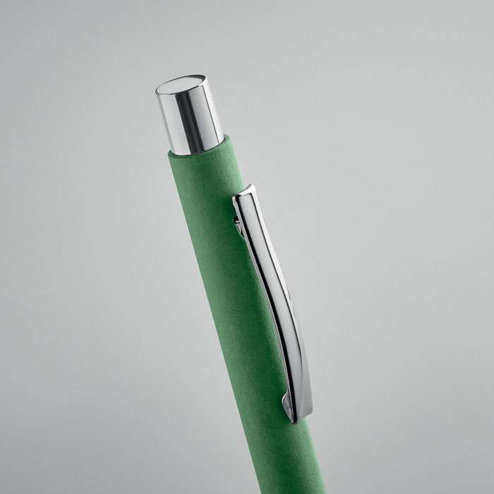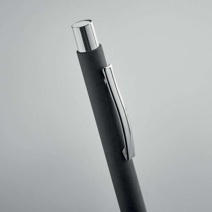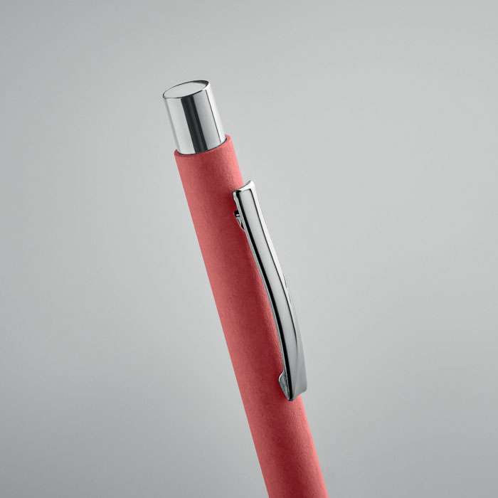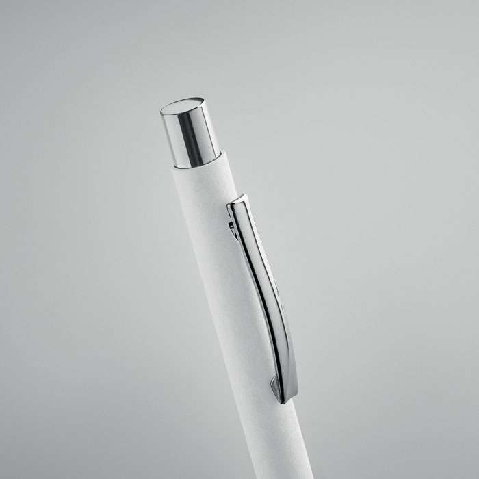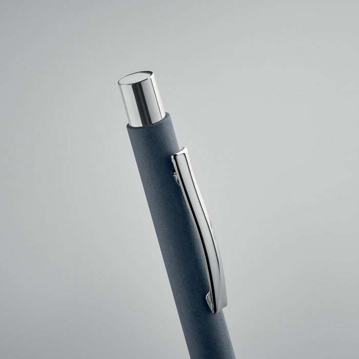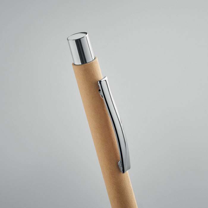 Kulspetspenna med tryckknapp i återvunnet papper och metall spets och klips. Blått bläck. FSC®-certified | FSC RECYCLED, P9, FSC-C213206