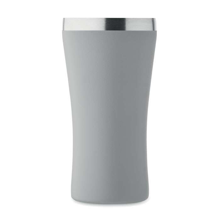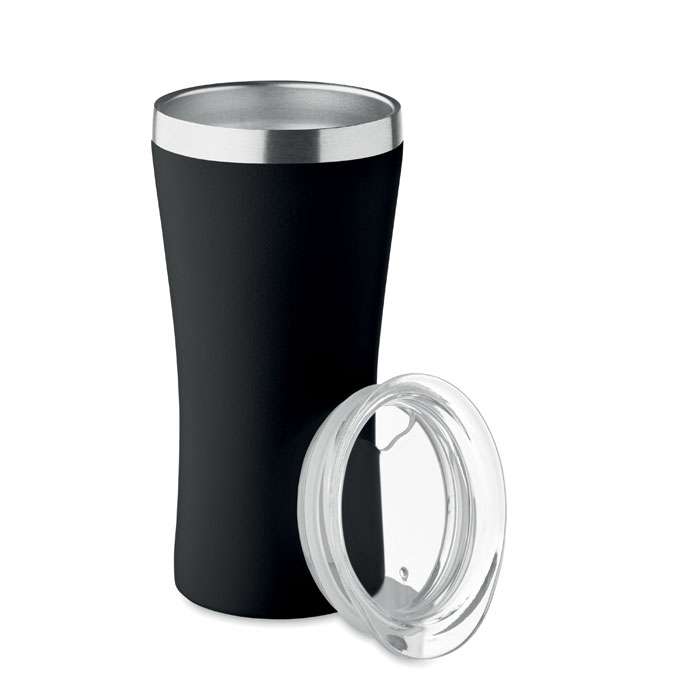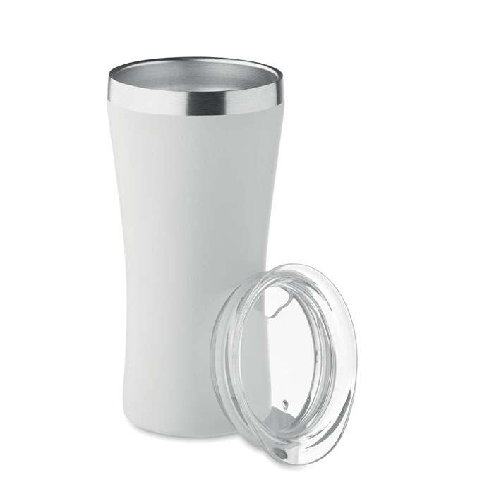 Liten dubbelväggig vakuumisolerad mugg i återvunnet rostfritt stål (90% återvunnet rostfritt stål och 10% rostfritt stål) med lock i transparent PP. Volym: 160 ml.