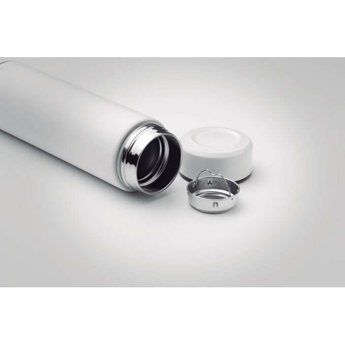 Termosflaska i rostfritt stål med vacuum dubbelvägg för bästa prestanda. Teasil medföljer. Volym 470ml. Läckagefritt.