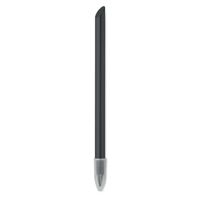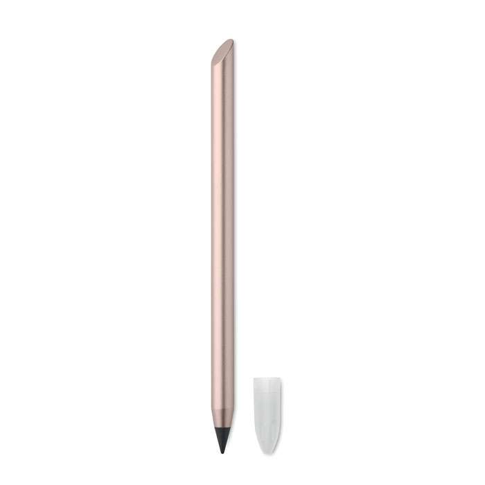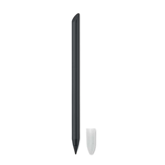 Långvarig bläckfri “evighetspenna” i återvunnen aluminium med lång livslängd. Pennan skriver med grafitspetsen som har ett skyddande plasthölje.