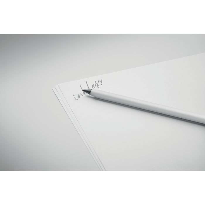 Långvarig bläckfri ”evighetspenna” i återvunnen aluminium med lång livslängd. Pennan skriver med grafitspetsen som har ett skyddande plasthölje.