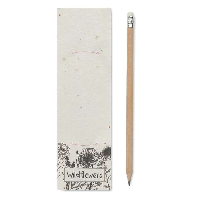 Blyertspenna i naturträ med suddgummi. I en påse med fröpapper (vildblommor). FSC®-certified | FSC MIX/FSC 100%, W15, FSC-C213206