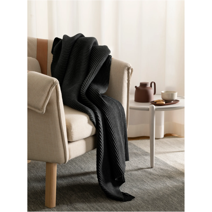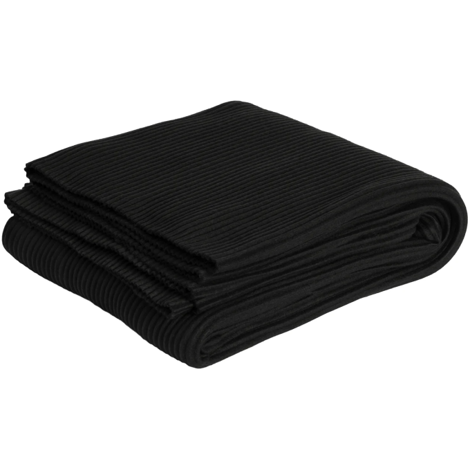 Plisserad fleecefilt tillverkad av en mjuk polyester – och viskosblandning. Den veckade strukturen på filten gör att den känns både fluffig och mjuk att svepa in sig i.