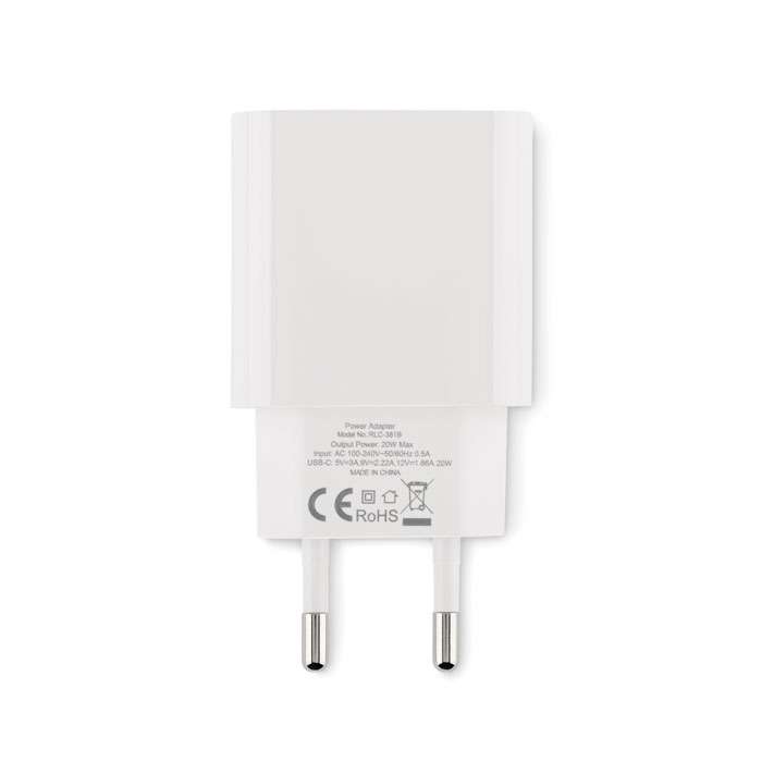 EU 2-polig väggadapter/laddare. Stödjer snabbladdningsteknik (20W). 1 Typ C. Stödjer Quick Charge 3.0/Power Delivery-teknik. Ej lämplig för användning i Storbritannien.