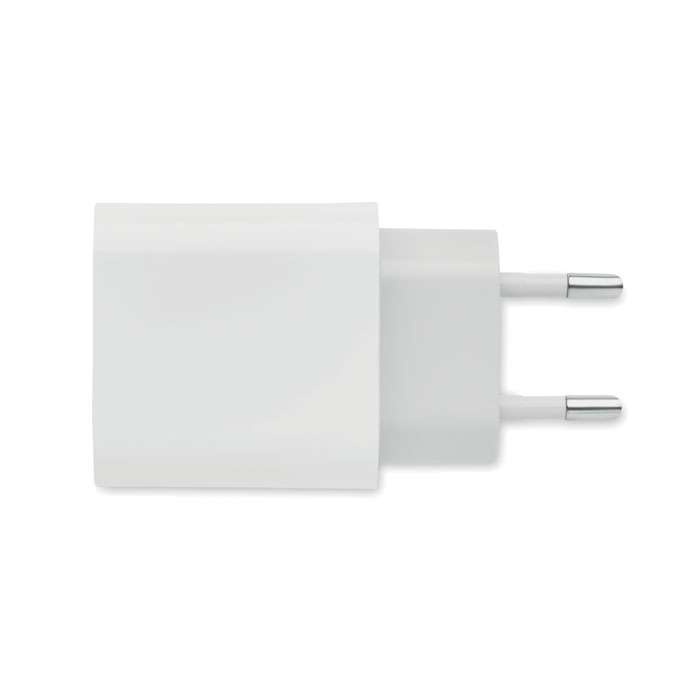 USB Laddare med 2-polig EU-kontakt. Stöder snabbladdningsteknik (18 W). En USB TypA och en USB TypC Stöder snabbladdning 3.0/Power Delivery-teknik. Marknadsförs ej UK.