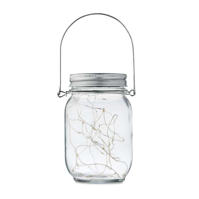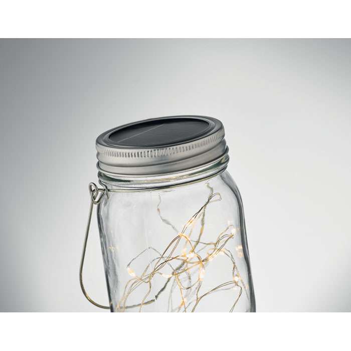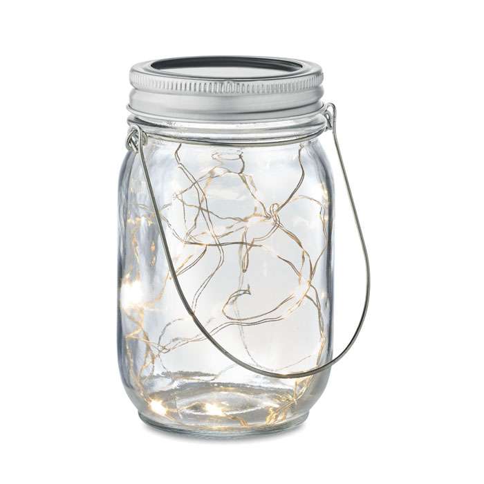 Solcellslampa för utomhusbruk med ljusslinga med 20st LED lampor. Hängare på toppen. Cirka 5 timmars ljustid vid fulladat batteri. Batteri 300mAh NI-MH ingår. IP44.