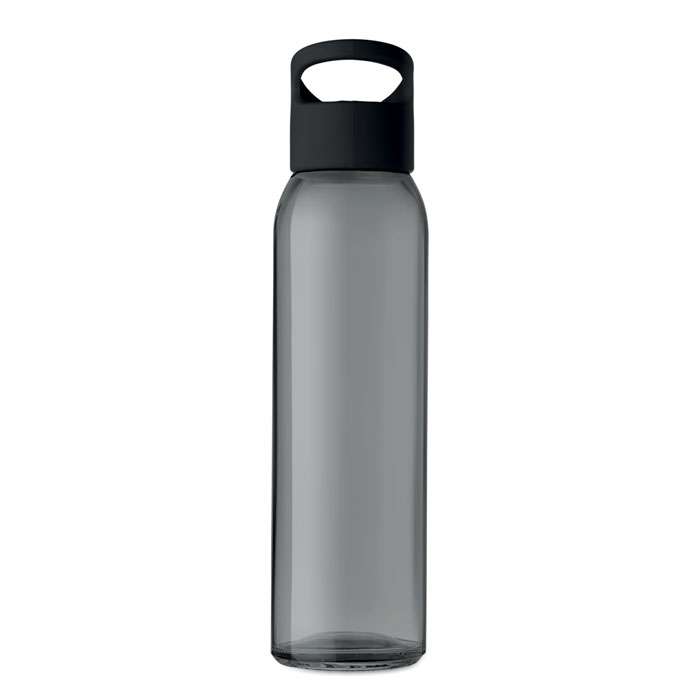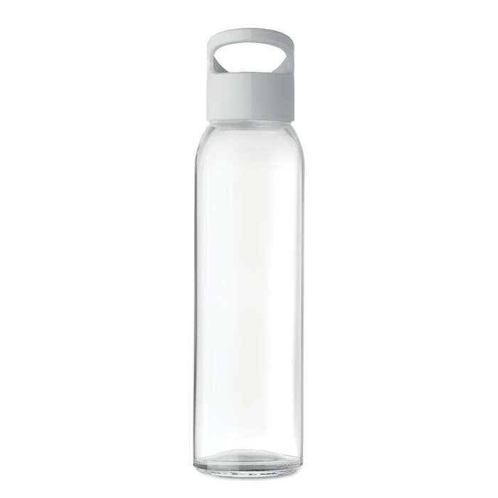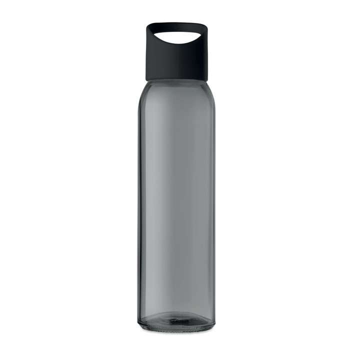 Glasflaska med praktiskt lock i PP plast som kan hängas på en krok. Vattenflaskan har en volym på 470 ml. Ej anpassad för drycker med kolsyra. Läckagefritt.