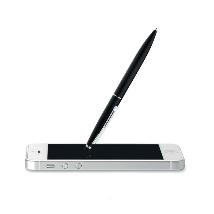 Aluminium kulspetspenna med touchscreen spets. Blått bläck.